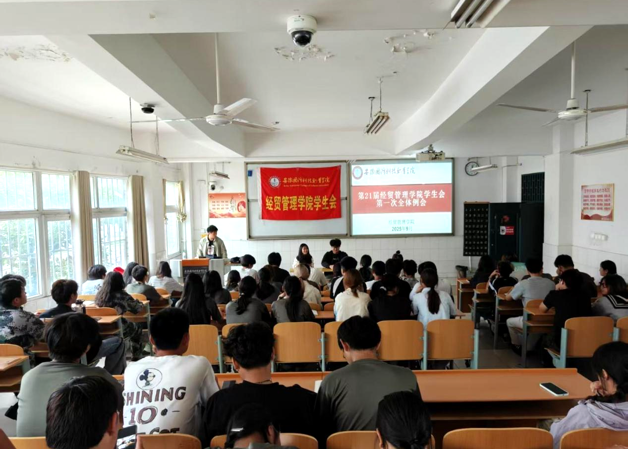 本网讯(学生通讯员 汪宝鑫)秋风送爽,新学期伊始。为进一步明确学生会工作方向、凝聚团队力量,9月26日中午,经贸管理学院学生会在2教105教室召开2025-2026学年秋学期第一次全体例会,学生会临时负责人王瑞喜主持会议,全体学生会成员参会。